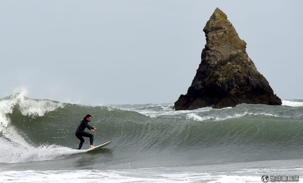 在威爾士的布羅德港(Broad Haven),一名水上好手正在享受衝浪的樂趣。