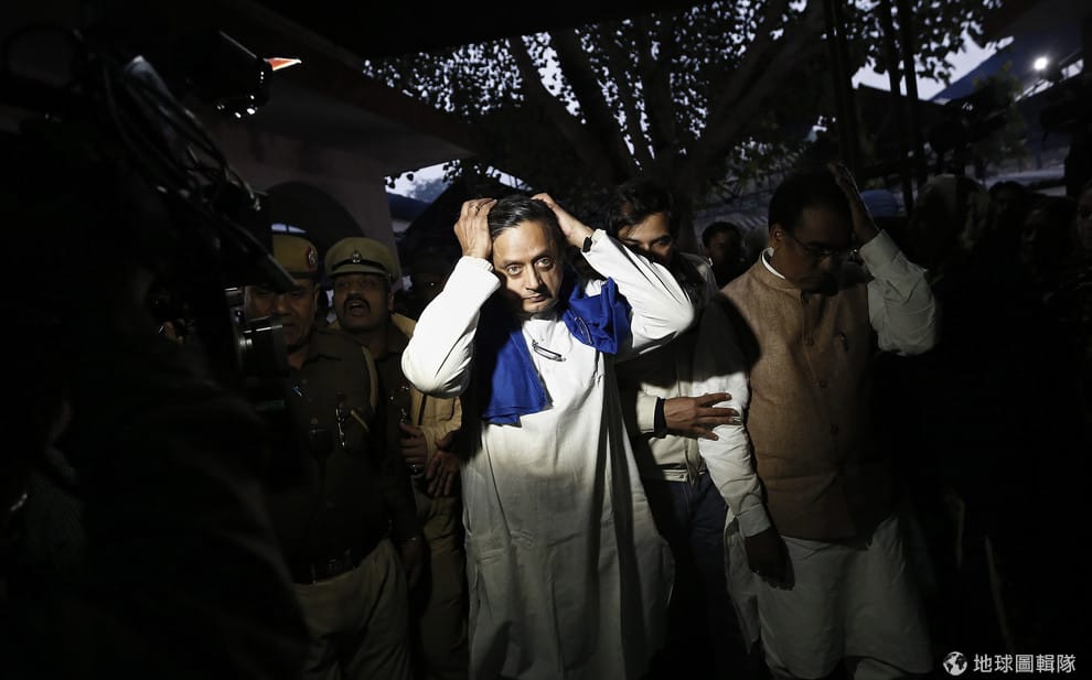 圖為 2014年1月,政治人物塔魯爾(Shashi Tharoor)出席妻子布希卡(Sunanda Puskhar)的火葬。當時,布希卡才剛指控塔魯爾出軌後不久,就被人發現陳屍在新德里(New Delhi)的飯店內,法醫認定布希卡的死「突然」又「不自然」。