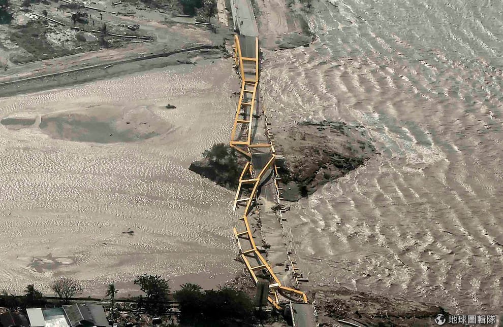 在受災嚴重的帕盧市(Palu),可以看到一座遭到地震與海嘯摧毀的斷橋。28號時,地震規模 7.5的淺層地震攻擊當地引發海嘯,造成至少 408人死亡,超過 160萬人受到影響。