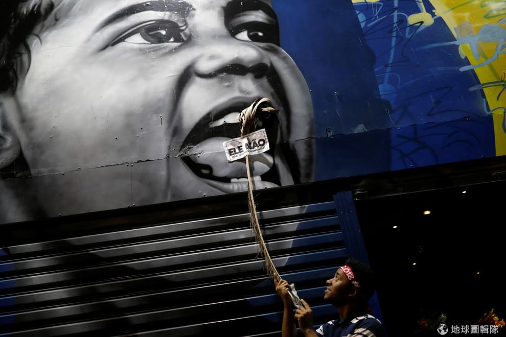 在聖保羅街頭,反對巴西極右翼總統候選人波梭奈羅(Jair Bolsonaro)的民眾高舉抗議告示牌,上面寫到「不能是他,我們不會沉默」,藉此呼籲大眾不要在十月七日的第一輪大選中投票給波梭奈羅。