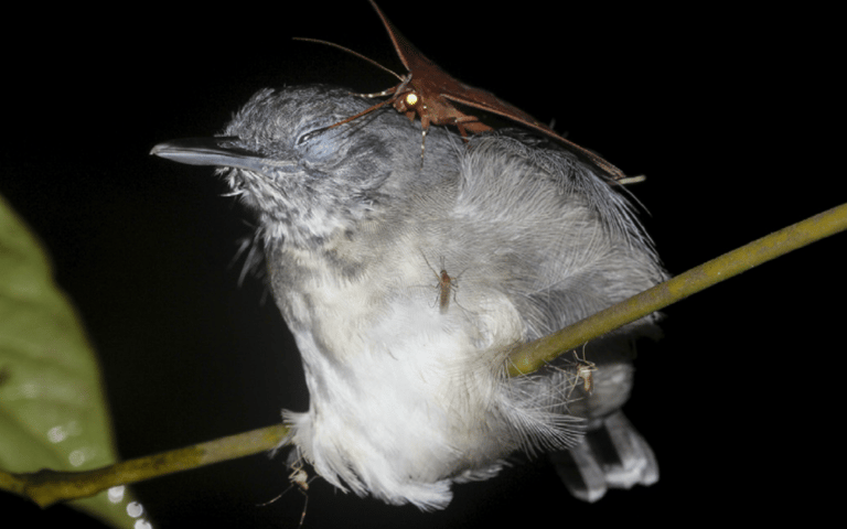 近日,巴西國立亞馬遜研究所的生態學家莫萊斯(Leandro Moraes)發現,住在亞馬遜叢林中的一種蛾(Gorgone macarea)會偷偷喝黑頦蟻鳥(black-chinned antbird)的眼淚來補充鹽分和蛋白質,這是科學界第一次在巴西發現蛾類出現這樣的行為,也是全世界第三次觀察到蛾在喝鳥的眼淚,第一次是 2007年在馬達加斯加,第二次則是 2015年在哥倫比亞。
