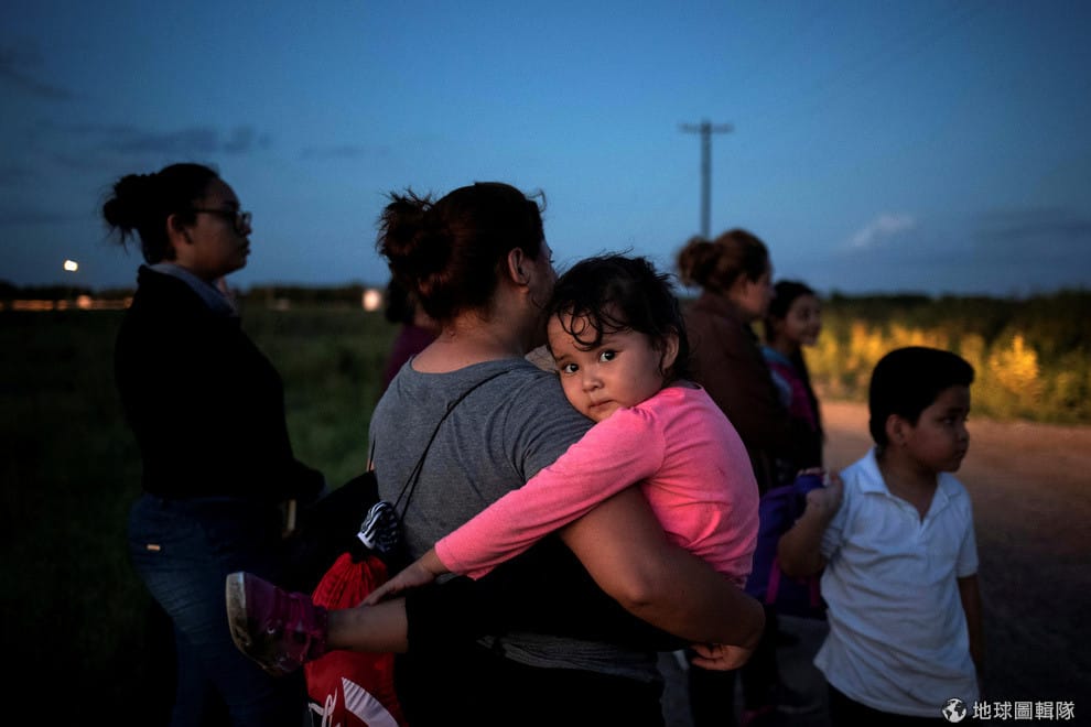 在美墨邊界,年僅三歲的麥德琳(Madeline)窩在媽媽的懷裡,來自宏都拉斯的他們從墨西哥非法偷渡到美國,被邊境警察發現後正在等待收押。