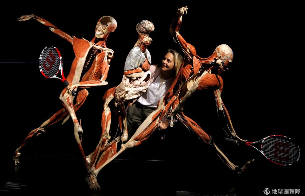在倫敦舉辦的身體世界博物館展覽上,展出了網球選手在揮拍時的肌肉運動。