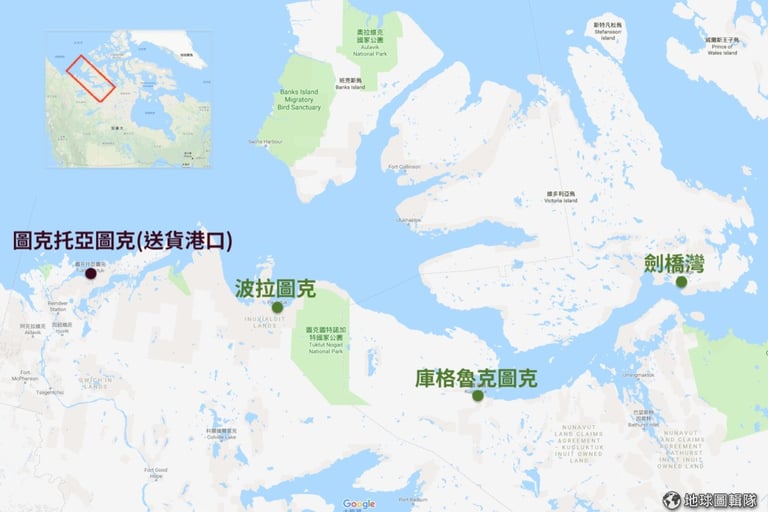 位於加拿大北部的阿蒙森灣(Amundsen Gulf),社區波拉圖克(Paulatuk)、庫格魯克圖克(Kugluktuk)、劍橋灣(Cambridge Bay)在這一陣子面臨了難解的大麻煩:水源、食物、燃料、木材全因為海冰的關係,導致破冰船被擋在海灣外完全進不來。