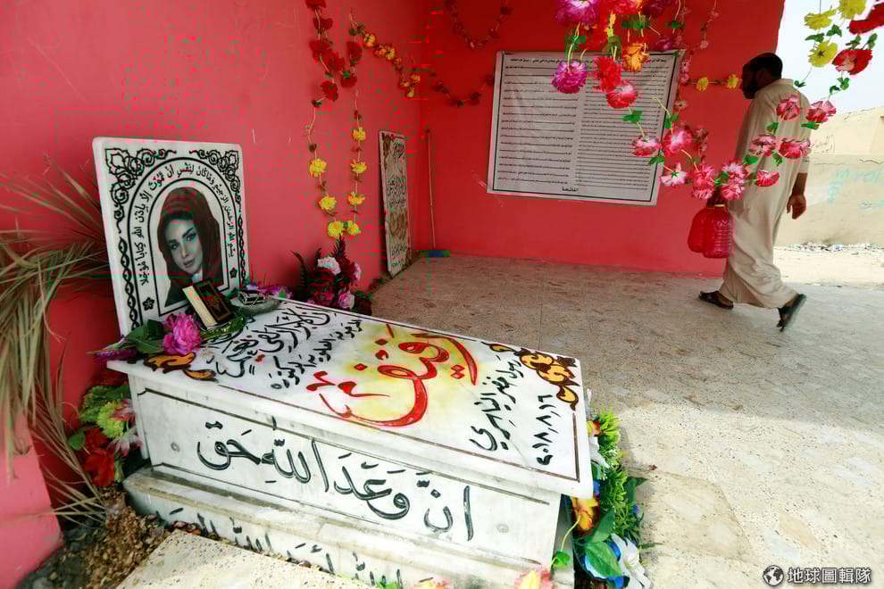 在位於納傑夫(Najaf)的墓園,一名工作人員走過被稱為「伊拉克芭比」的整形醫生和美容專家艾雅希禮(Rafif al-Yasiri)的墓。艾雅希禮於今年 8月16日過世,享年 32歲。根據官方說法,她是因為吸毒過量而死,但仍有不少人認為背後另有隱情。