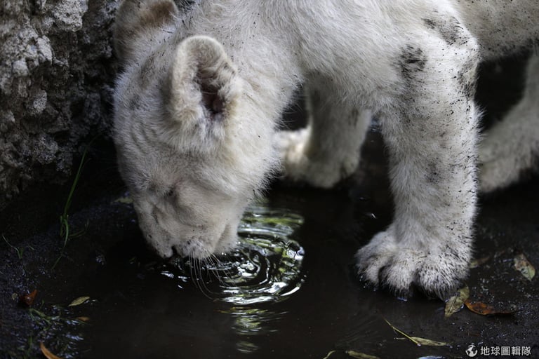 身為非洲獅的後代,全身雪白的白獅並不是白子,而是因為隱性基因導致的稀少存在。放眼全世界,白獅因為毛色的緣故在野外環境格外顯眼,讓牠們不僅在狩獵時容易被發現,也很容易成為獵人、盜獵者的目標。