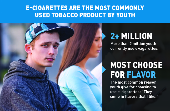 根據美國疾病控制與預防中心(CDC)的報告,過去幾十年來,青少年抽傳統紙菸的人數越來越少,取而代之的是電子煙,其中與電子煙廠商的行銷手法息息相關。然而,目前並沒有長期研究足以證實,抽電子煙比抽傳統紙菸來得健康。另外,電子煙含有具成癮性的尼古丁,會對青少年仍在發育的大腦產生不良影響。