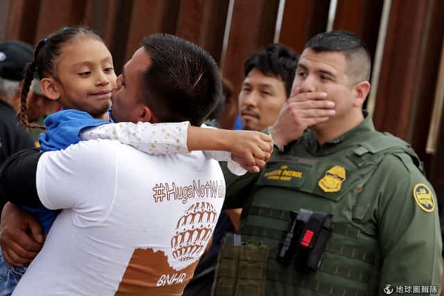在美墨邊境圍牆,一名住在墨西哥的男子緊緊抱住現居美國的女兒。