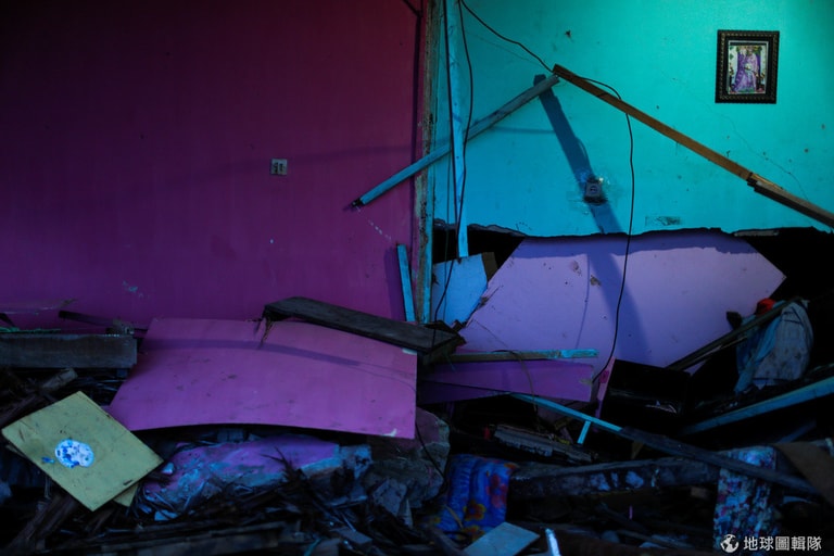 站在因為土壤液化而被摧毀的家園前,樸斯比塔描述他們家所遇到的奇蹟:在避難所找到消失好幾天的 1歲女兒。