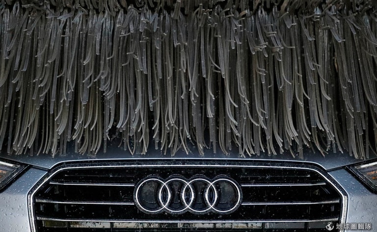 在城市哈瑙(Hanau)的洗車廠,一輛奧迪(Audi)柴油車A6 TDI車正在接受清理。