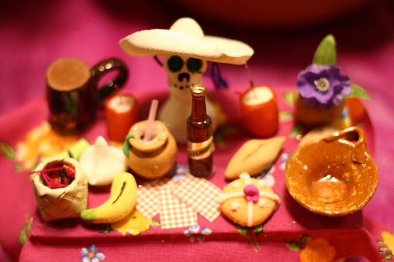 當然,祭壇上最不能缺少的還是食物。人們相信亡靈會回家享受這些食物的香氣,當亡靈離開時,他們在世的親人就可以將這些食物和鄰居與親友一起分享。