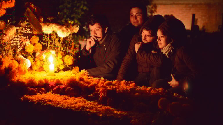 每年的 11月1日和 2日,只要到墨西哥走一遭,就會發現整個國家沉浸在一種歡樂的氛圍裡,大街上出現許多打扮成骷髏的民眾、家家戶戶忙著布置華麗的祭壇。深夜時分,原本一片漆黑的墓園點起了一根根蠟燭,鋪上了大量橘黃色的萬壽菊,人們會守在往生親人的墓旁談天說地。沒錯!對墨西哥人來說,比聖誕節更盛大的「亡靈節」(Día de Muertos)又到了!