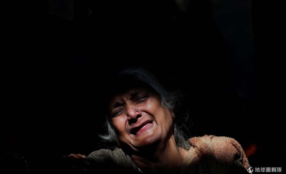 在替罹難者舉辦的集體火葬現場,一名罹難者家屬難掩情緒哀痛。