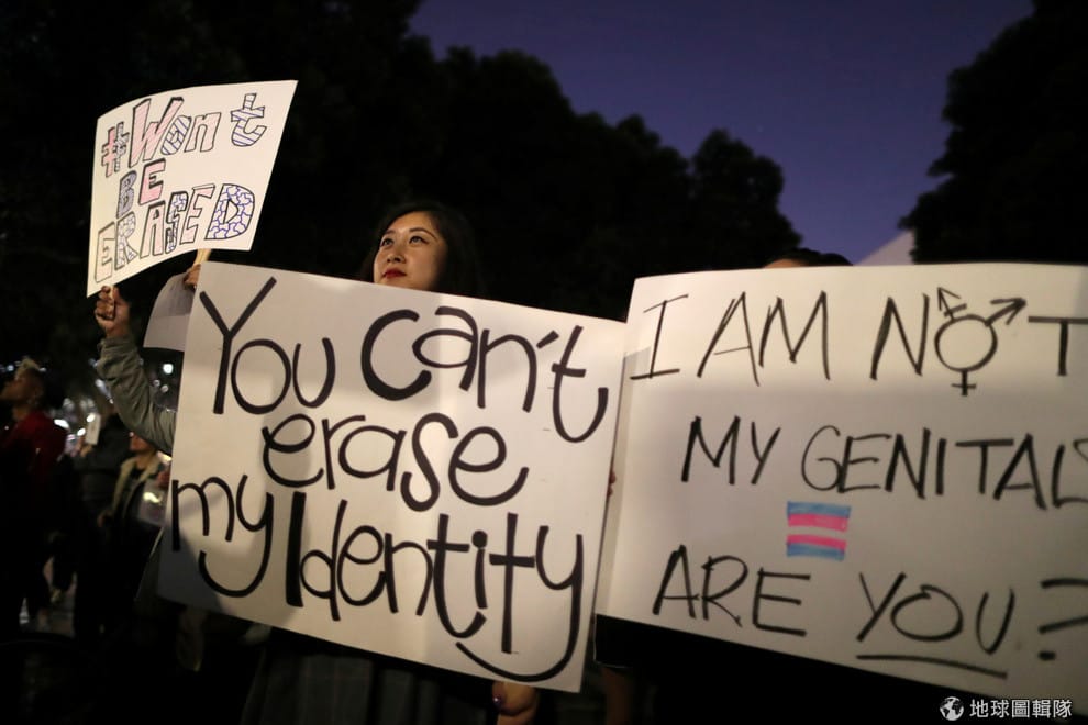 人們走上洛杉磯街頭抗議,不滿一份流出的官方備忘錄顯示,美國衛生及公共服務部正打算推出新措施,將出生證明可以註明的性別侷限在「男」、「女」兩個選項,而且該個體的性別只能根據出生時的性器官來判定,此舉立刻讓人們在口號「#不會被消除」(#WontBeErased)的號召下上街抗議。