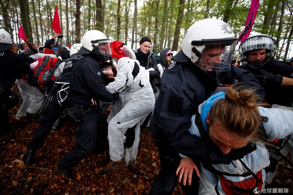 在鄰近科隆的漢巴赫森林(Hambach Forest),反對開發當地的環保人士與鎮暴警察發生衝突,警察們也動用武力一一把他們架離現場。環保人士表示,當局開放在森林附近開採煤礦,影響當地生態。