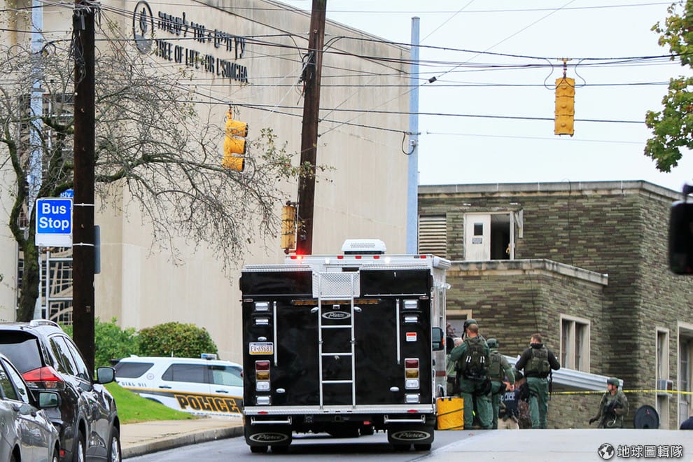 在賓州匹茲堡市的生命之樹猶太會堂(Tree of Life synagogue),特種警察部隊前往該地控制槍案現場。在 27號早上,一名男子持槍闖入會堂掃射,造成 11人死亡。警方隨後逮捕這名 46歲的槍手鮑爾斯(Robert Bowers),他故意瞄準匹茲堡市的猶太社群執行仇恨犯罪(hate crime)。