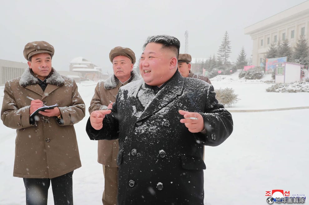 在這張朝鮮中央通訊社釋出的照片中,北韓領導人金正恩正在視察與中國吉林省接壤的三池淵郡,當地已經下起了冬雪。
