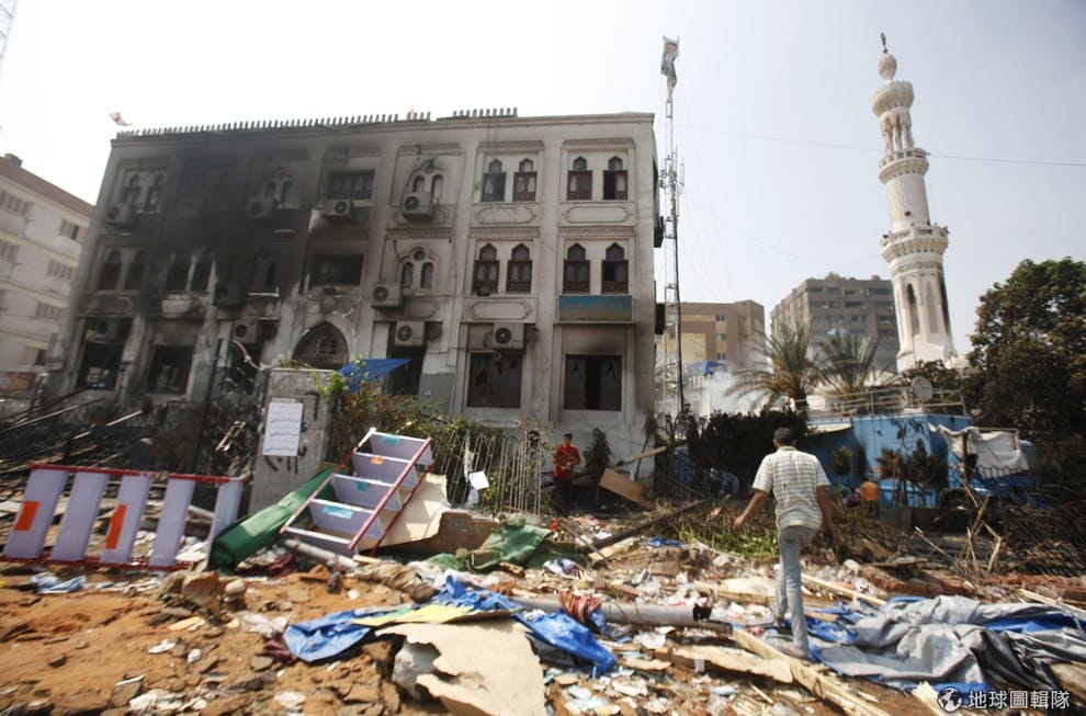 埃及當地遭到攻擊的Rabaa Adawiya清真寺,外牆已經黑成一片。