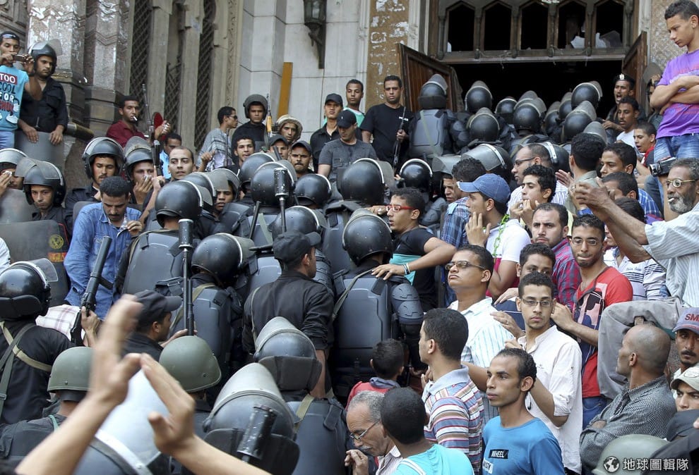 地球圖輯隊照片中是上周六(17),埃及警方和支持前總統穆爾西的民眾在清真寺爆發嚴重衝突。