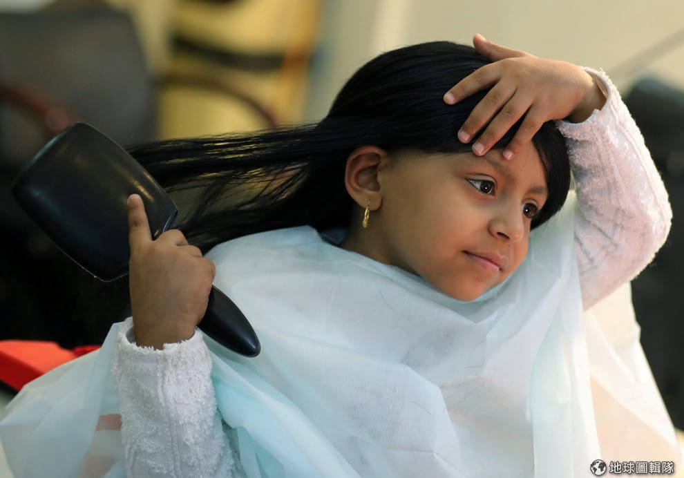 在開羅的一家理髮院中,罹患癌症的穆絲塔法(Lara Mostafa)梳著一頭假髮,她很開心自己又能有一頭烏黑亮麗的頭髮。
