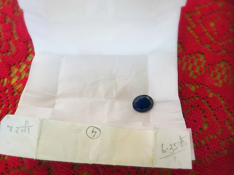 在蘇利室的介紹下,第一站我們來到販售有色寶石的商人家,這是卡修拉荷(Khajuraho)一間不起眼的房子,我們一行人坐在客廳,看著他從一個便當袋大小的袋子裡,拿出許許多多像中藥包一般的紙包。