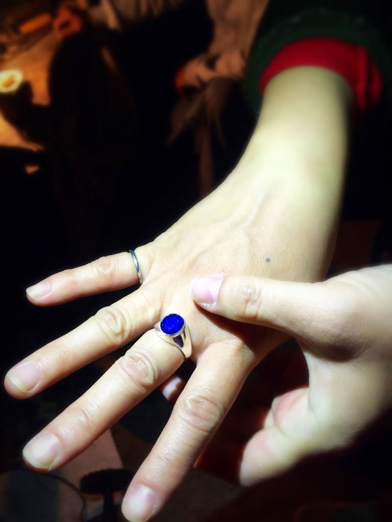 金工師傅差遣小男孩離開,然後開始和蘇利室聊起天來了,不久示意我們拿出寶石給他看,師傅將寶石一一迅速看過,和蘇利室確定配戴的人。他會看一眼寶石又看一眼客人,似乎在想該如何製作合適的戒指。