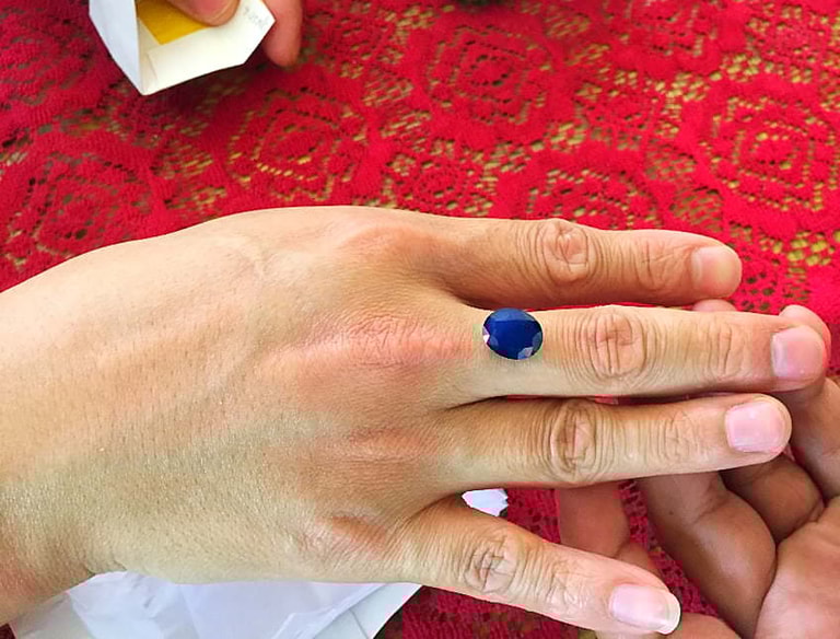 紙包裡面,有些包著一顆寶石,有些包著一打寶石;有些寶石十分漂亮,有些寶石連我們外行人看了也知道十分普通。他詢問蘇利室我們為什麼要買寶石,蘇利室回答是僧侶的建議。「那麼買這種就可以了,這些漂亮的你們看看就好了!」