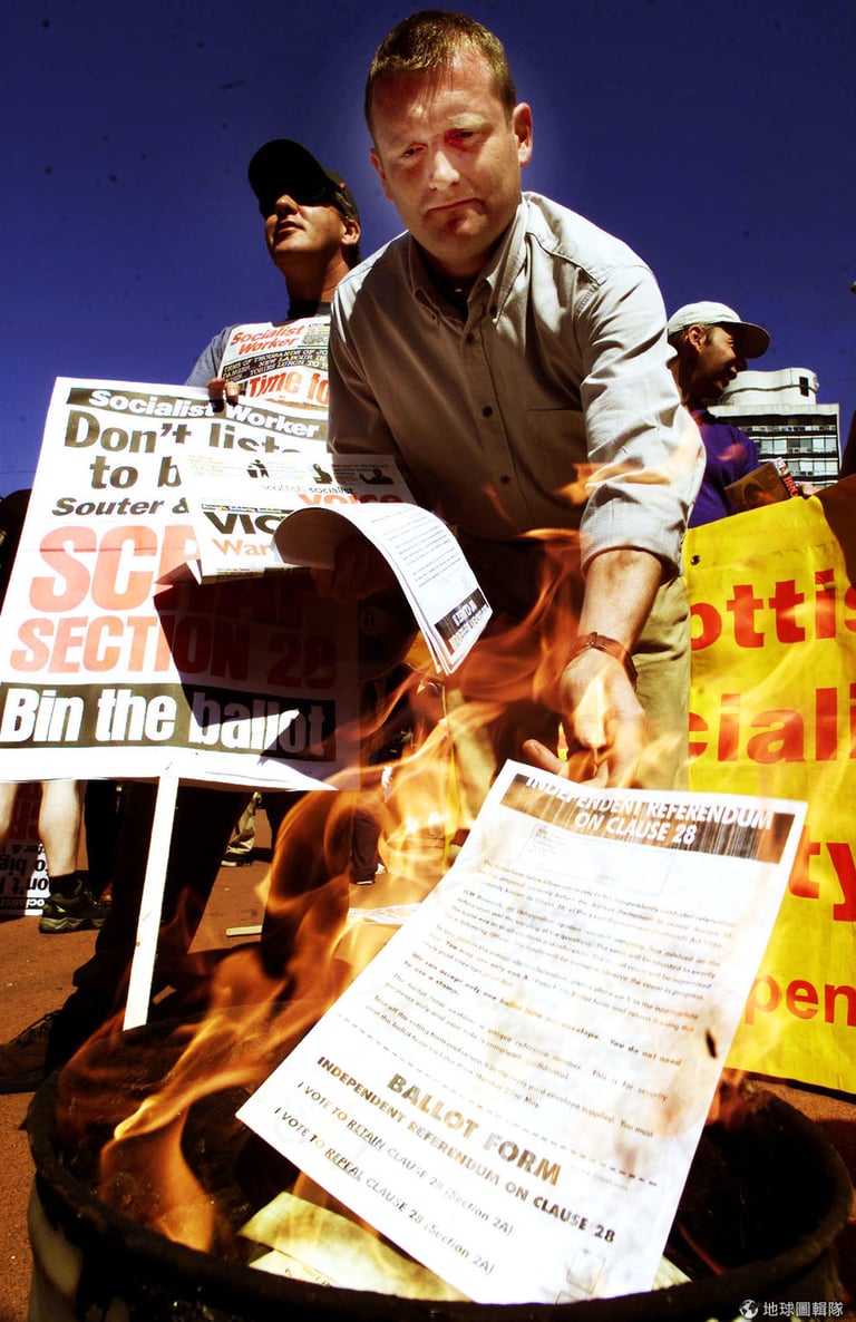在學校經歷過《28號條款》時代、現在是「蘇格蘭跨性者聯盟」成員的莫頓(James Morton)指出,當時那條法案讓大家在學校無法談論和性向有關的話題,也幾乎要了他的命。