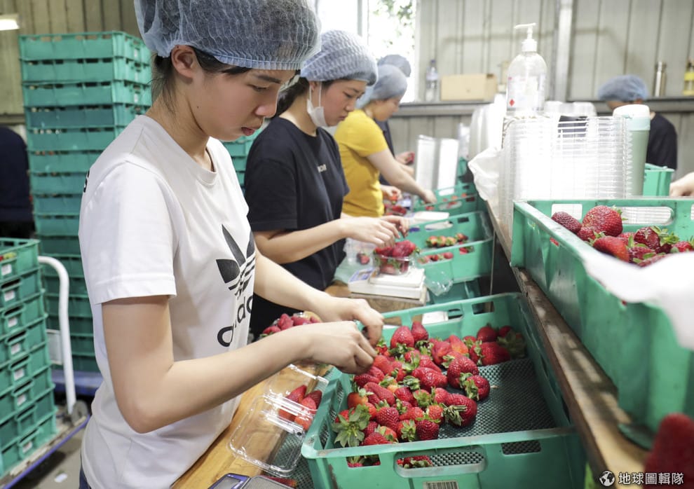 在這張拍攝於本月 5號的照片中,草莓農場的工人正忙把草莓裝盒。