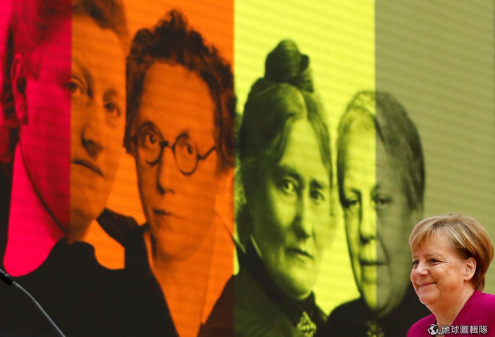 在柏林(Berlin),德國總理梅克爾(Angela Merkel)出席了德國女性取得投票權的百年紀念活動。