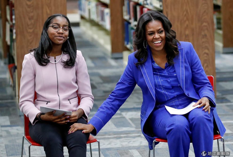 前美國第一夫人蜜雪兒(Michelle Obama)來到一所位於芝加哥的高中,準備談談她新出的自傳。