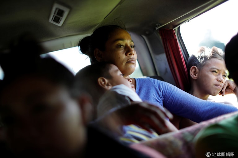 加入跋涉行列的小男孩阿多奈(Adonai)和丹澤爾(Denzel)睡眼惺忪,他們一個今年 5歲,一個今年 8歲,兩人緊緊地跟著今年 33歲的媽媽艾絲可巴(Glenda Escobar)。