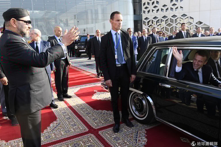 在首都拉巴特(Rabat)的高速鐵路啟用典禮結束後,摩洛哥國王穆罕默德六世(Morocco's King Mohammed VI)向前來參加典禮的法國總統馬克宏道別(Emmanuel Macron)揮手道別。