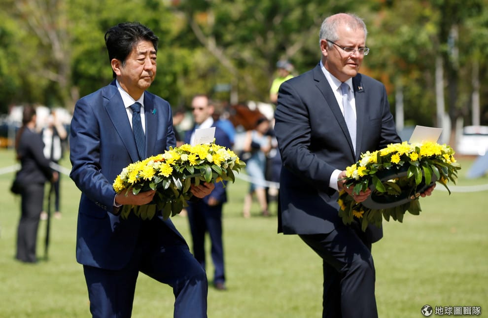 來到位於城市達爾文(Darwin)的戰爭紀念館,日本首相安倍晉三和澳洲總理莫里森(Scott Morrison)到此擺下紀念花圈。