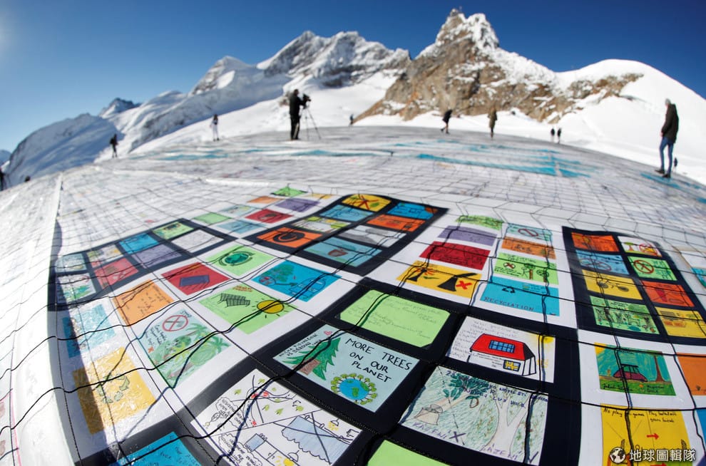 在阿爾卑斯山少女峰(Jungfraufirn)的最大冰川阿萊奇冰川(The Great Aletsch Glacier),寫有對抗全球暖化訊息的 10萬張明信片被擺在此地。這些明信片來自世界各地的青少年,如此壯觀的景致也創下「少女峰最大張明信片」的金氏世界紀錄。