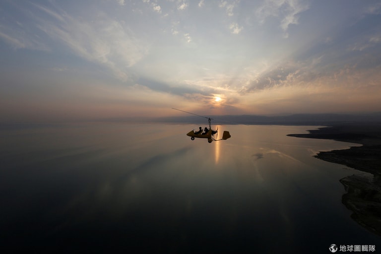 一架旋翼機飛過死海上空,替到此的觀光客提供了不同角度的美景。