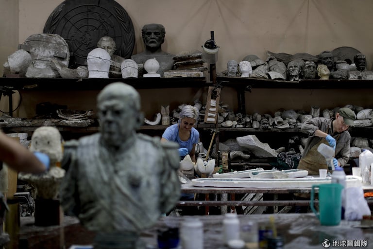 在這間工作坊裡,總共有數十位「醫生」,他們都是專業的雕像、紀念碑修復師,可以將碎裂的石頭、大理石等修補好,並且清除雕像上的塗鴉。