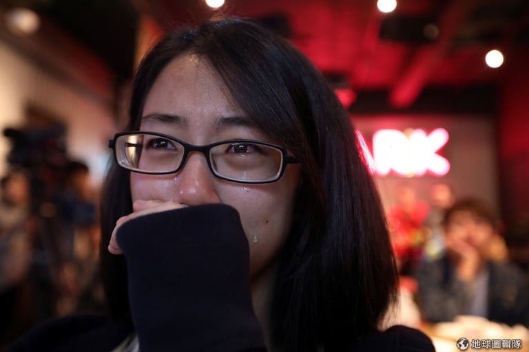 24號這天,台灣舉行九合一大選,一名LGBT支持者看著公投開票結果流淚。