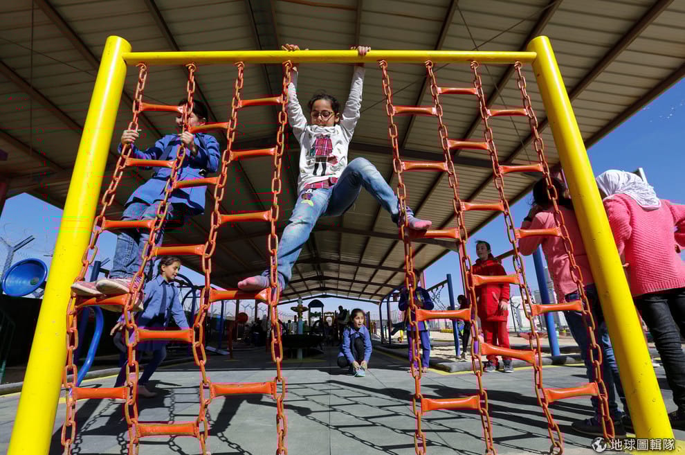 在緊鄰敘利亞的Al-Zaatari難民營內,孩子們開心地在新落成的公園內玩耍,這座公園也是一座對多重身障者友善的公園。