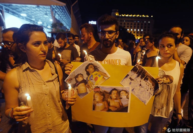 BBC 21號報導,敘利亞首都大馬士革近郊的Ghouta區遭受嚴重的 攻擊,炸彈以及帶有毒氣武器重創當地, 目前推估有上百位民眾死亡,敘利亞反政府軍則表示超過1,000 位居民在這場毒氣攻擊中喪生。