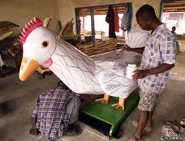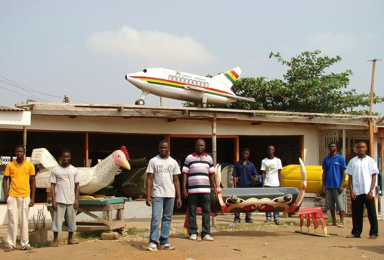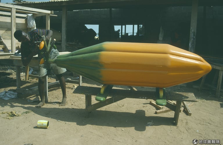 迦納木匠的好手藝也在造型棺材上展露無遺。現在,來自南韓、俄國、美國和丹麥的學生會大老遠飛來迦納,和棺材設計師們學習造型棺材工藝。