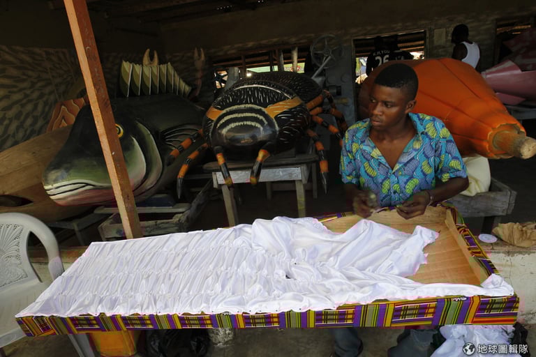 在位於西非的迦納,葬禮不是個充滿悲傷和淚水的場合,相反的,當地在舉辦葬禮時非常熱鬧隆重,人們認為對死者而言,這是他們死後人生的新開始,當然要辦得風風光光才行。