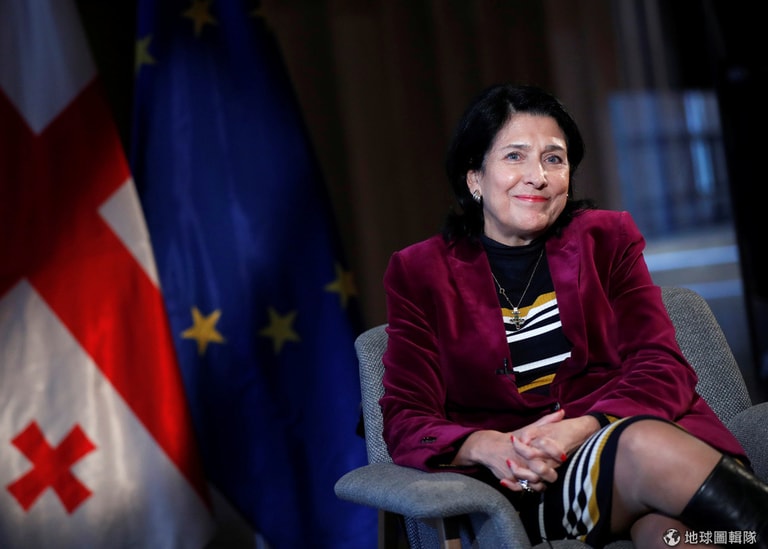 在首都提比里斯(Tbilisi),喬治亞首位女總統佐拉比契維利(Salome Zurabishvili)正在接受《路透社》的訪問。出生於法國的她曾擔任喬治亞的外交部長和國會議員,協助喬治亞成為北大西洋公約組織(NATO)的獨立夥伴。