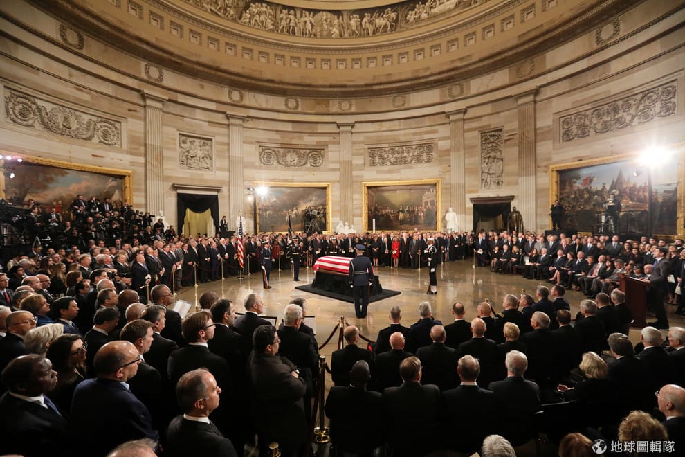 在美國國會山莊的圓頂下,人們齊聚一堂悼念老布希(George H.W. Bush)總統的離世,享耆壽 94歲。