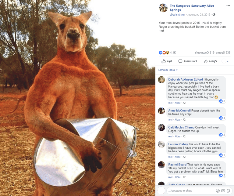 2015年,澳洲袋鼠羅傑(Roger)靠著一張「用雙手壓扁金屬桶」的照片,將牠健美的體格表露無遺,也讓牠迅速在網路上爆紅。