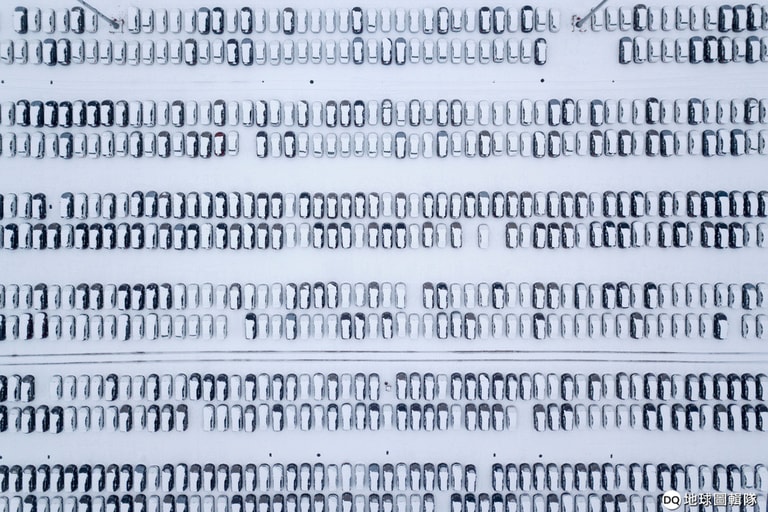 在山東省煙臺市某處的停車場,大雪過後讓成排的車子積上一層厚厚的白雪。