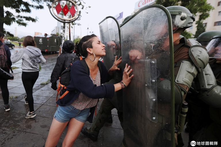 聲援原住民馬普切人(Mapuche)的示威民眾試圖阻擋鎮暴警察前進,他們走上街是想要為在警察行動中遭到射殺的馬普切人卡崔楊卡(Camilo Catrillanca)尋求司法正義。