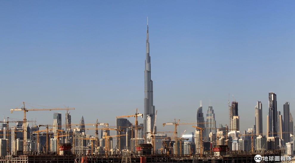 在城市杜拜(Dubai),無數的起重機正在工地裡忙碌著。