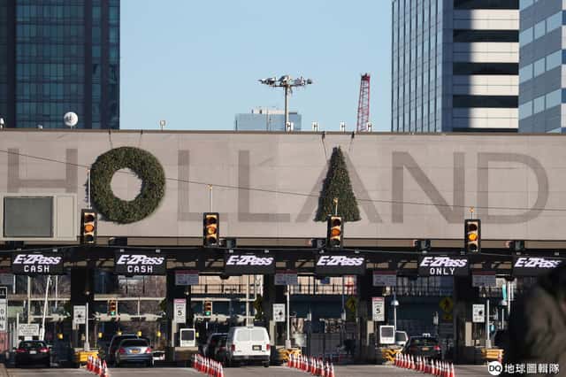 來到連接紐約曼哈頓和澤西市的「荷蘭隧道」(Holland Tunnel),可以看到上頭的字母O和字母A被應景地擺上聖誕裝飾。
