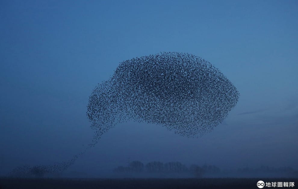 根據世界最大的環保資訊網站《Mother Nature Network》的資料,椋鳥為了躲避猛禽類的攻擊會群聚在一起飛行,飛翔的時候還會不停變換隊形,有時候是愛心,有時候是沙漏,且鳥群換隊形的動作非常迅速流暢,就像是流水在流動一樣。